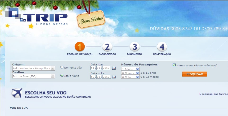 As promoções de venda de passagens de avião divulgadas nos últimos dias pelo Tudo de Viagem estão entre as melhores deste ano. A Trip, que demorou a colocar no seu site as tarifas promocionais, está vendendo a partir de R$ 39,90 bilhetes para viagem em janeiro e fevereiro, meses considerados alta temporada.