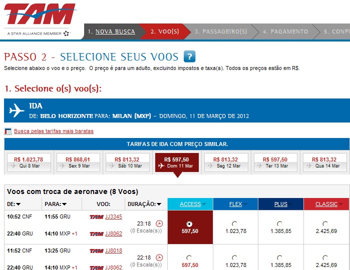 Mas para conseguir estes preços é preciso ficar pelo menos 15 dias na Europa e comprar a ida e a volta. A promoção não vale para classe executiva. Os preços cobrados pela TAM para a Europa são mais em conta que as passagens de Confins para Macapá (AP) vendidas no Natal e Ano novo.