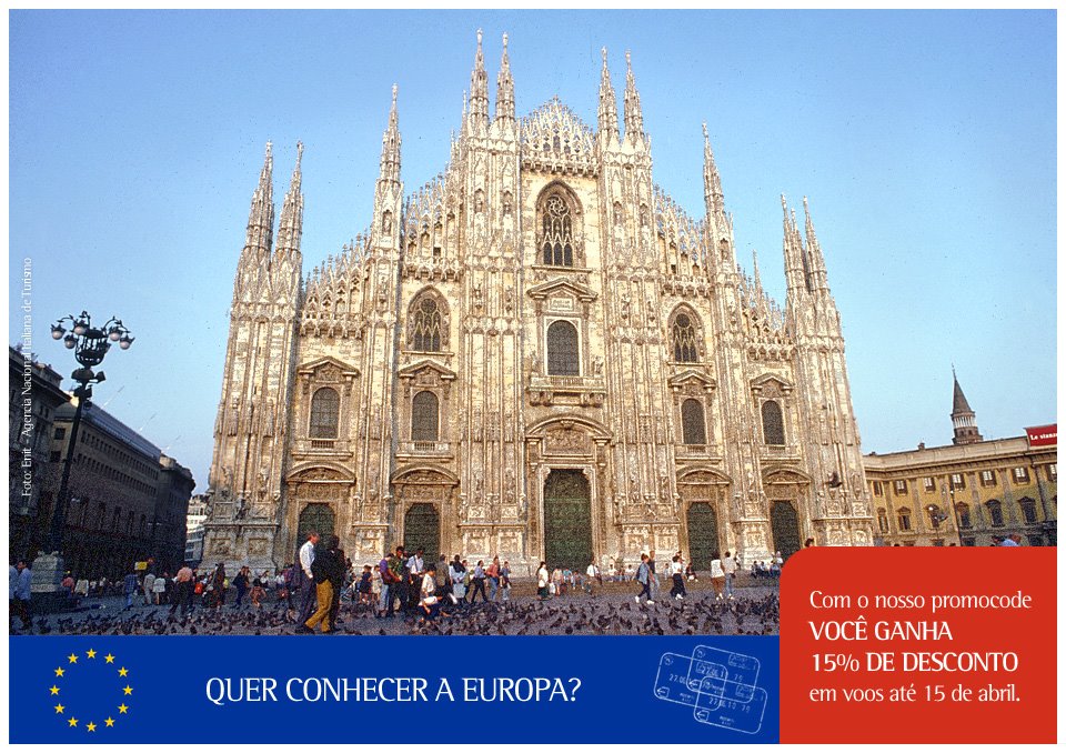 A TAM está vendendo até o dia 22 de janeiro passagens do Brasil para Frankfurt, Londres, Madri, Milão e Paris com 15% de desconto. A promoção vale para viagem até 15 de abril. Após escolher a data e o destino, basta digitar o código promocional 106681 para ter direito ao desconto.