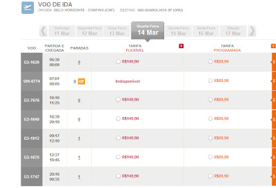 No site da Webjet, empresa comprada pela Gol, os preços aparecem em todas as datas, o que facilita na escolha do melhor dia para viajar. De qualquer forma, o novo sistema da Gol é bem melhor que o anterior. Assim que é feita a escolha data, aparece ao lado os valores e horários. Abaixo dos preços tem um link do chat da empresa.