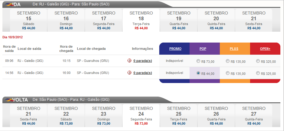 Dumont. No site da companhia não era possível comprar este trecho a partir de