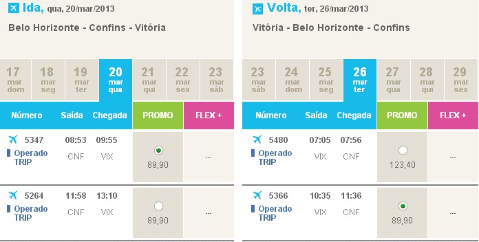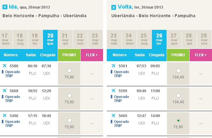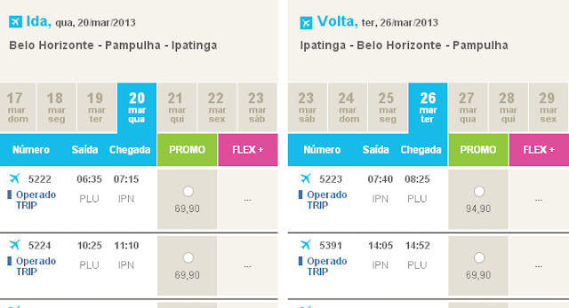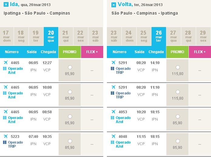 Esse preço é encontrado no site da Azul, empresa que em outubro de 2012 in iniciou