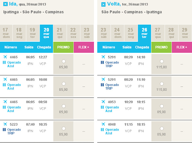 Ipatinga para Viracopos é com uma parada em Belo Horizonte. Acreditem! O curioso que o preço da passagem da Pampulha