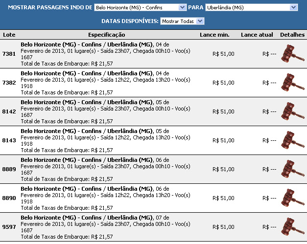 destinos. Até o final do ano passado era possível comprar passagens dando lance