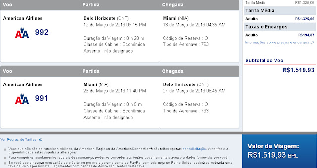 Preço Confins/Miami com as taxas de embarque