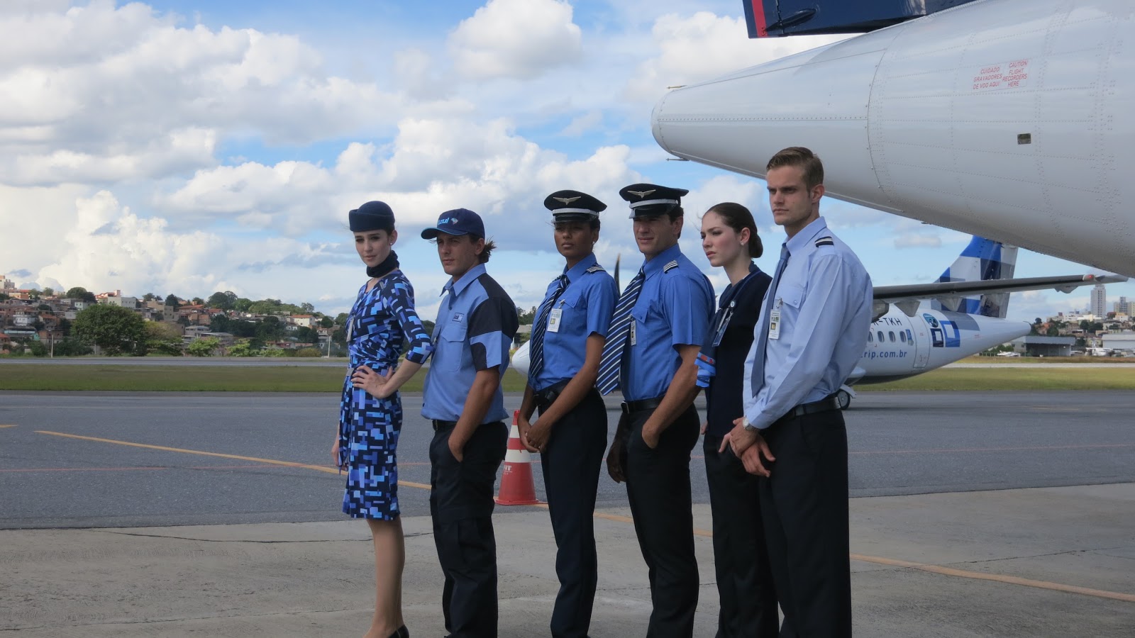 foi cercado por funcionários da Azul/Trip que queriam saber das novidades da companhia e saber quando e quando vão vestir os unifornes. Os novos trajes