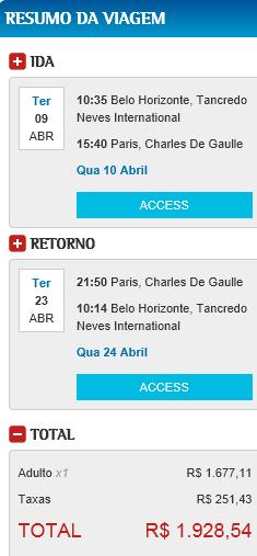 Se o embarque for em Confins as passagens para qualquer um dos destinos da