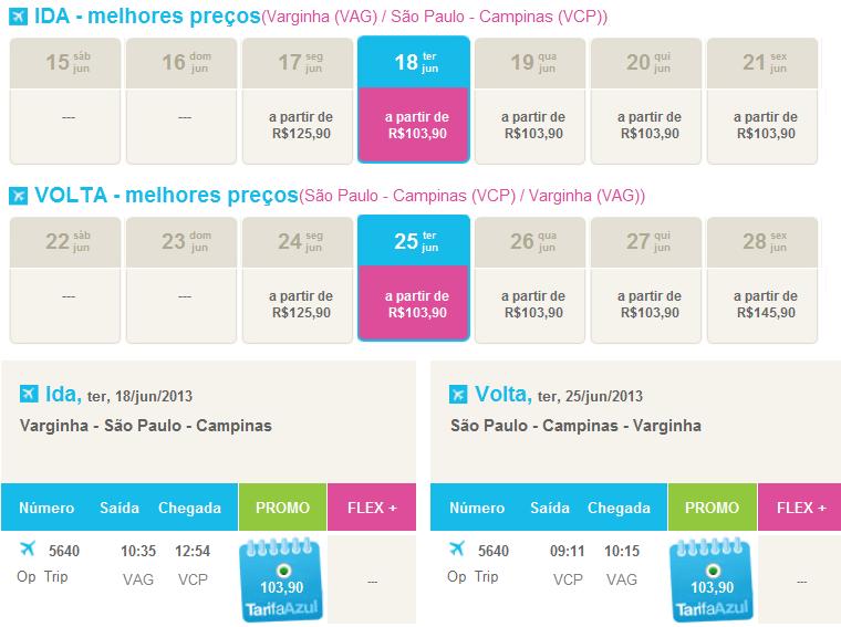 passagens estão sendo vendidas por R$ 103,90 para 17 de junho, data