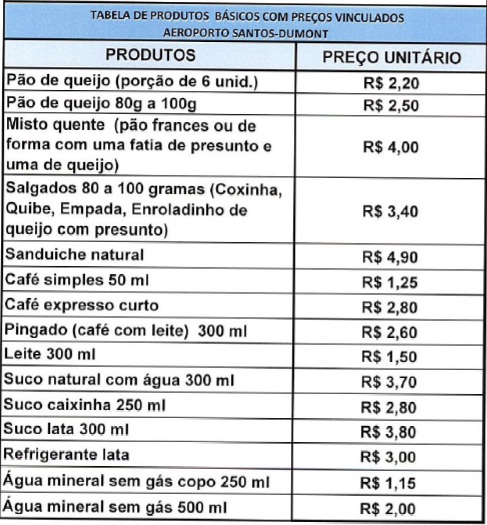 | A Lanchonete Popular do Santos Dumont tem 15 produtos tabelados |