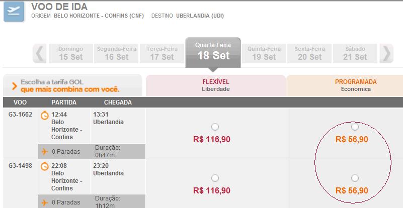 anunciado pela Gol. De Confins para Uberlândia, no Triângulo