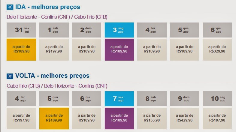 voos para Cabo Frio. Até julho os voos serão às sextas, sábados, domingos e