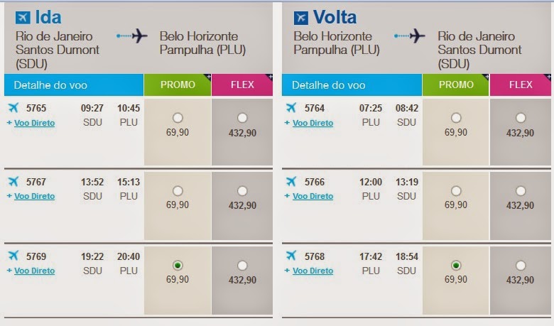 de Janeiro) o menor valor é R$ 55 na promoção da Gol, enquanto na TAM as passagens custam R$ 56. Na Gol as passagens de