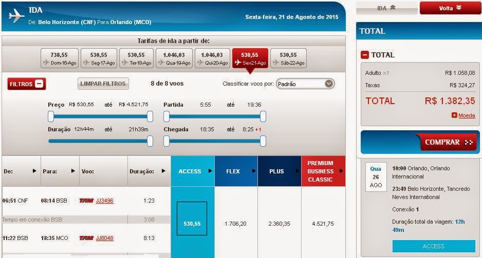 TRECHO CONFINS/ORLANDO NOS VOOS DA TAM