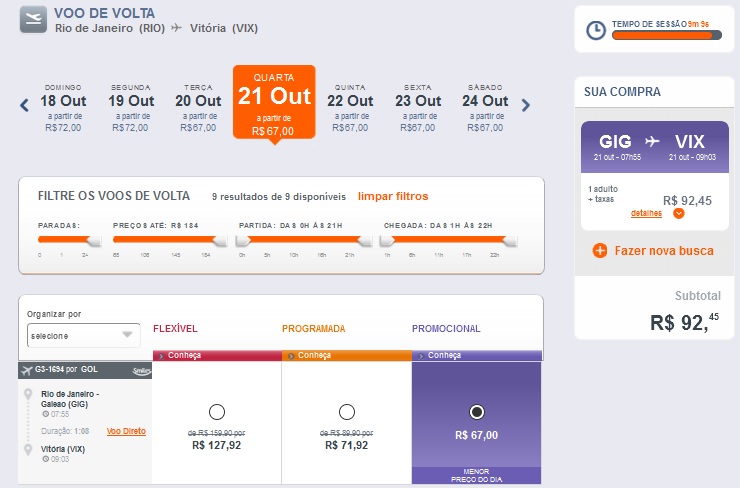 VALOR DO RIO DE JANEIRO PARA VITÓRIA PELA GOL USANDO CÓDIGO