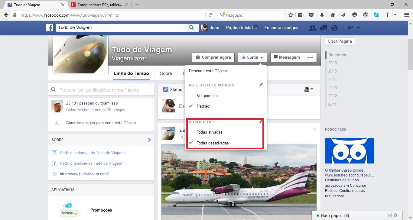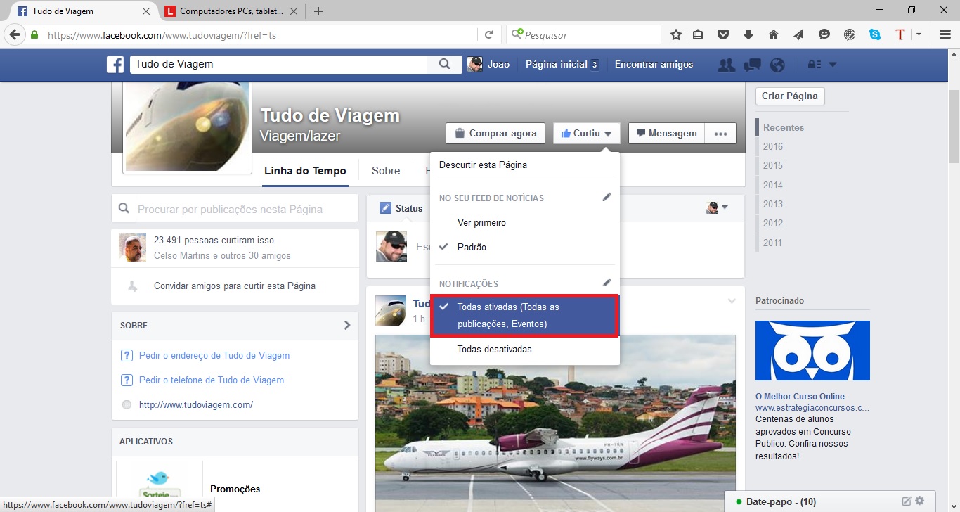 Os leitores do Tudo Viagem não querem perder nenhuma novidade de promoções de passagens aéreas ou pacotes de viagem. Por isso, pediram que fizéssemos um passo a passo que ensine a configurar o facebook ou twitter a enviar notificações para o smartphone a cada vez que uma postagem for publicada.