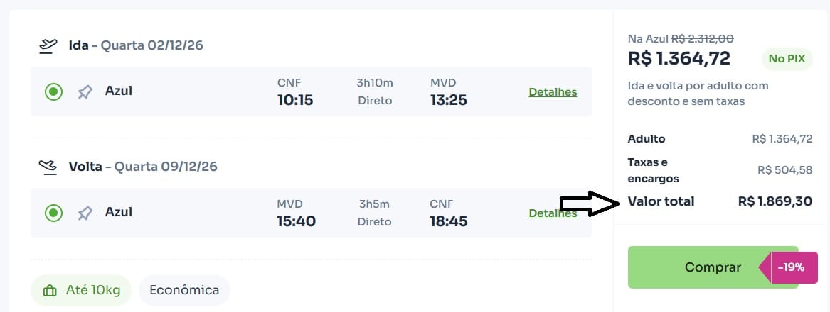 A Azul iniciará em 4 março voos diretos entre Belo Horizonte (Aeroporto de Confins) e Montevidéu, a capital do Uruguai. Fomos conferir os valores das passagens aéreas e tivemos uma bela surpresa. Para viagens nos meses de maio, agosto e dezembro você vai pagar pelos bilhetes aéreos R$ 1.869, valor de ida e volta com as taxas de embarques inclusas.