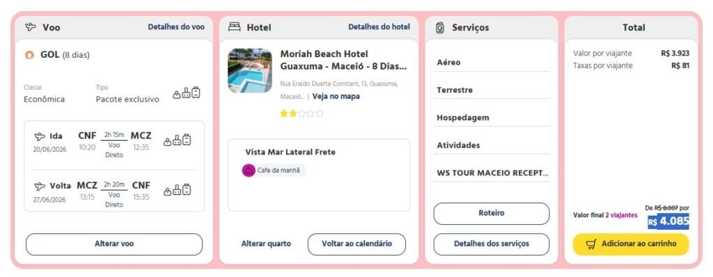 Confira abaixo os detalhes do pacote para Maceió
